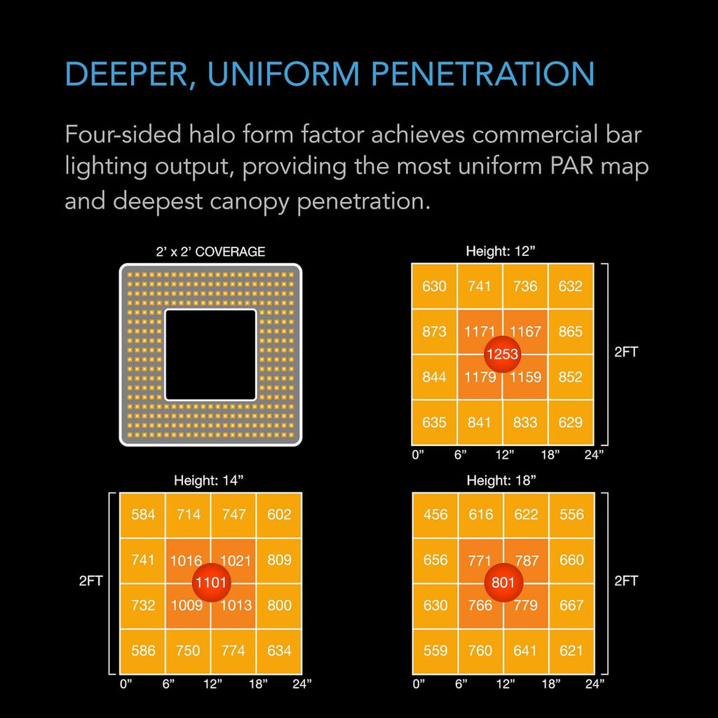 | Coverage | 2×2 ft, stronger canopy penetration | 2×2 ft, lighter intensity |