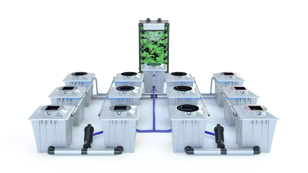 Minimum footprint: Length: 1.5m Width: 1.47m (Pots as close as possible - without tank)Maximum footprint: Length: 1.7m Width: 2.15m (with supplied amount of pipe and 60cm plant centres)
