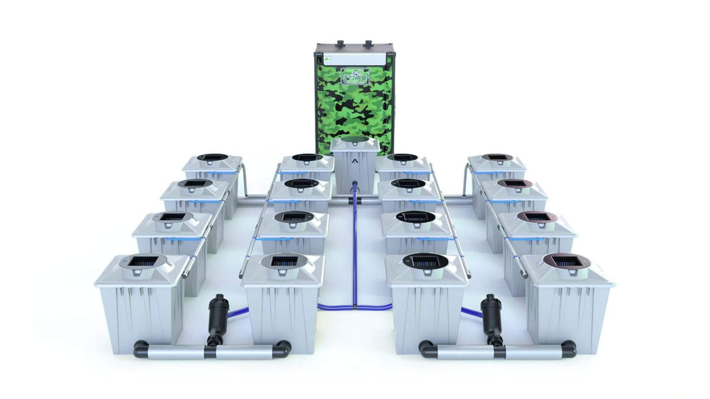 Minimum footprint: Length: 1.8m Width: 1.47m (Pots as close as possible - without tank)Maximum footprint: Length: 2.3m Width: 2.15m (with supplied amount of pipe and 60cm plant centres)