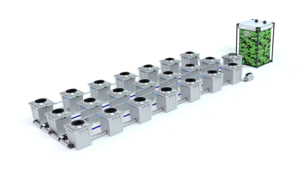 Minimum footprint: Length: 3m Width: 1.1m (Pots as close as possible - without tank)Maximum footprint: Length: 4.1m Width: 1.55m (with supplied amount of pipe and 60cm plant centres)