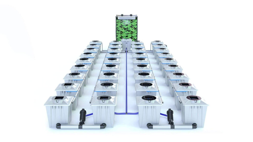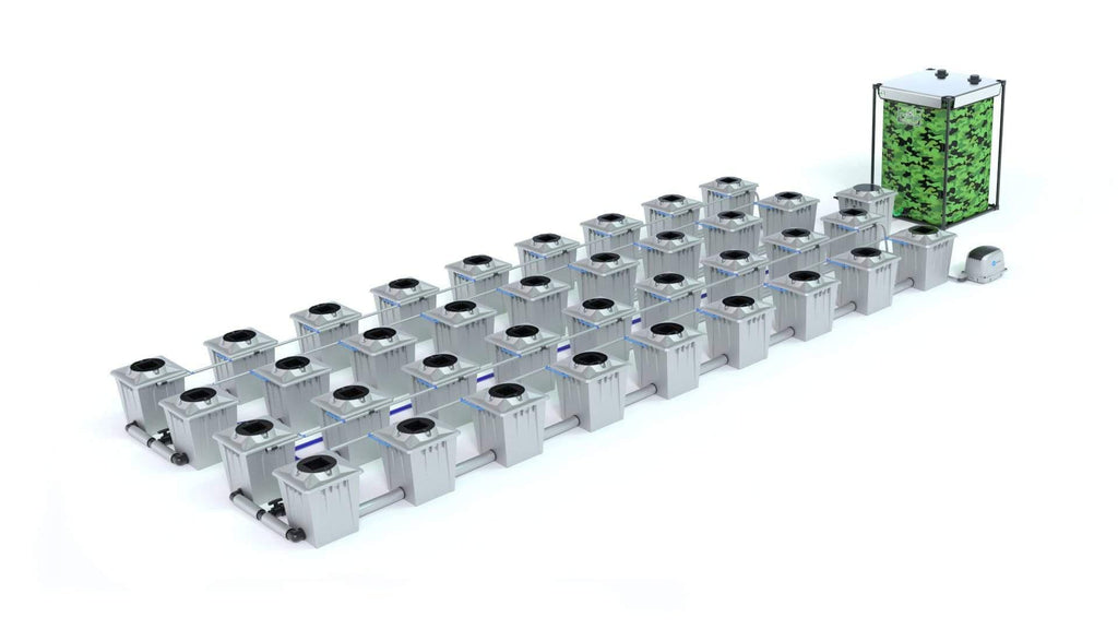 Minimum footprint: Length: 3.75m Width: 1.47m (Pots as close as possible - without tank)Maximum footprint: Length: 5.3m Width: 2.15m (with supplied amount of pipe and 60cm plant centres)