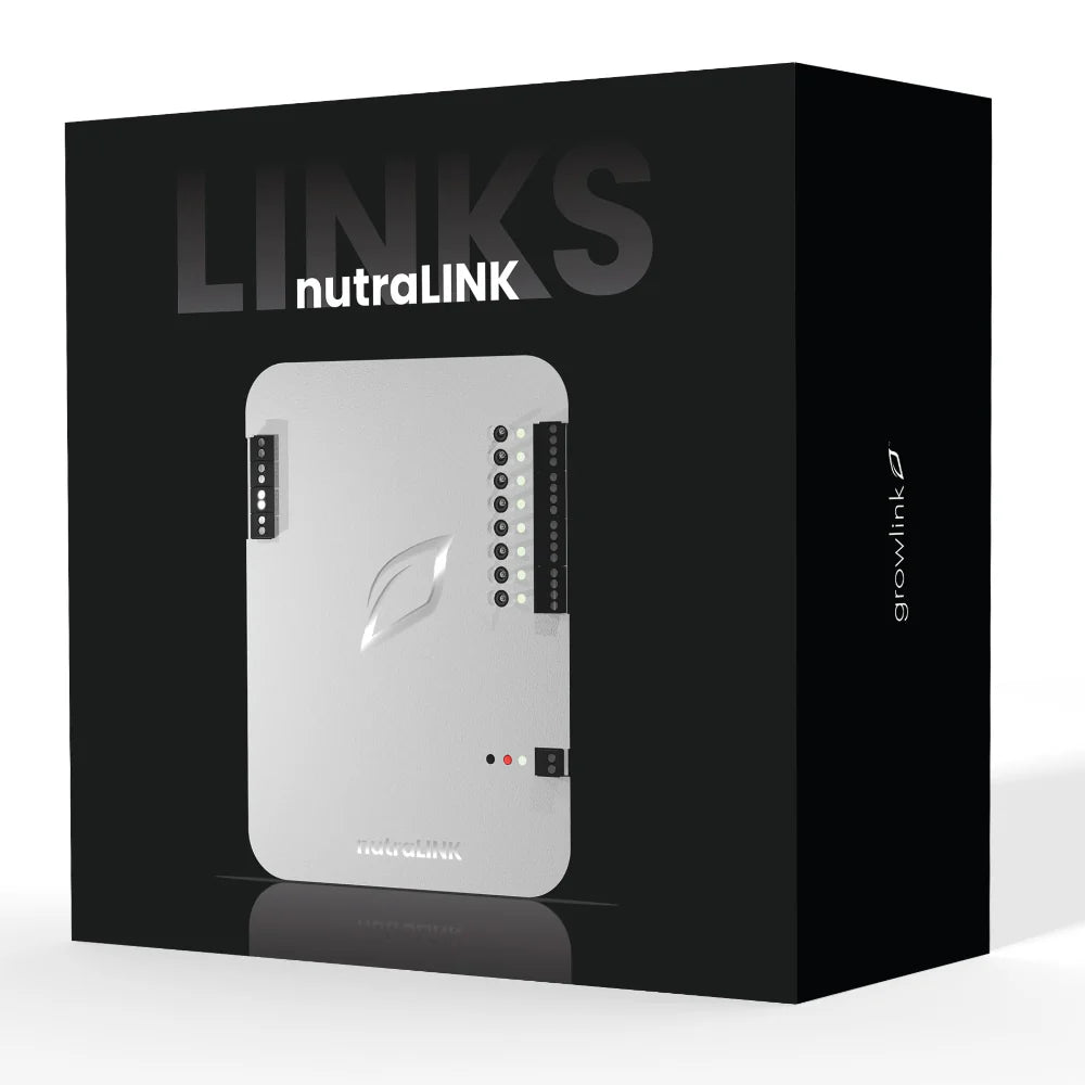 The nutriLINK is a powerful nutrient delivery controller with 8 universal outputs for pumps and sensors for pH, EC, and flow. It seamlessly integrates with the Growlink platform, offering precise automation to optimize nutrient dosing, maintain balance, and improve crop health and yields.