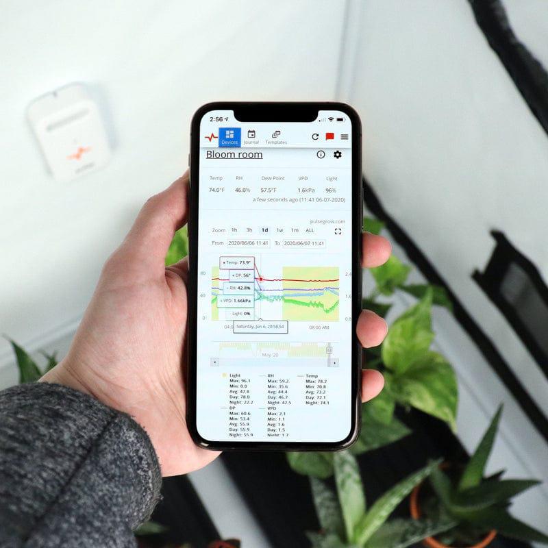 Pulse Pro is the big brother of the Pulse One ; both monitor and wirelessly send your encrypted grow room stats straight to the Pulse app on your phone (PC, iOS, Android), but the Pro give you Co2 logging, PPFD readings and a Colour Spectrum Analyser for your grow light!