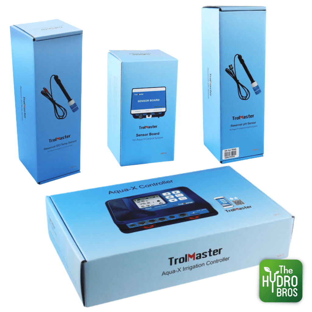This game-changing TrolMaster Aqua X package comes with everything you need: The TrolMaster Aqua X, Amp board, EC Temp sensor and PH sensor. Monitor your reservoir remotely whereever you are in the world