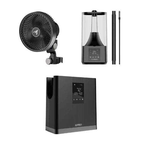 Save a little by picking up our best selling AC Infinity products together in a three piece set. This trio brings you balanced airflow, stable humidity control and dependable heating, giving you a complete climate foundation for small to medium grow tents. It is a simple and efficient way to keep your environment consistent without juggling separate systems.
