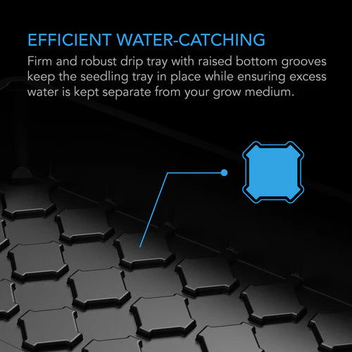 Adjustable vents on the dome offer complete humidity control through smooth and effortless rotating. Make further adjustments with the optional height extender, which can be applied to elevate the dome for cloning projects. The drip and seedling trays fit seamlessly to support up to 40 seedlings while catching excess water and preventing leaks in the process.