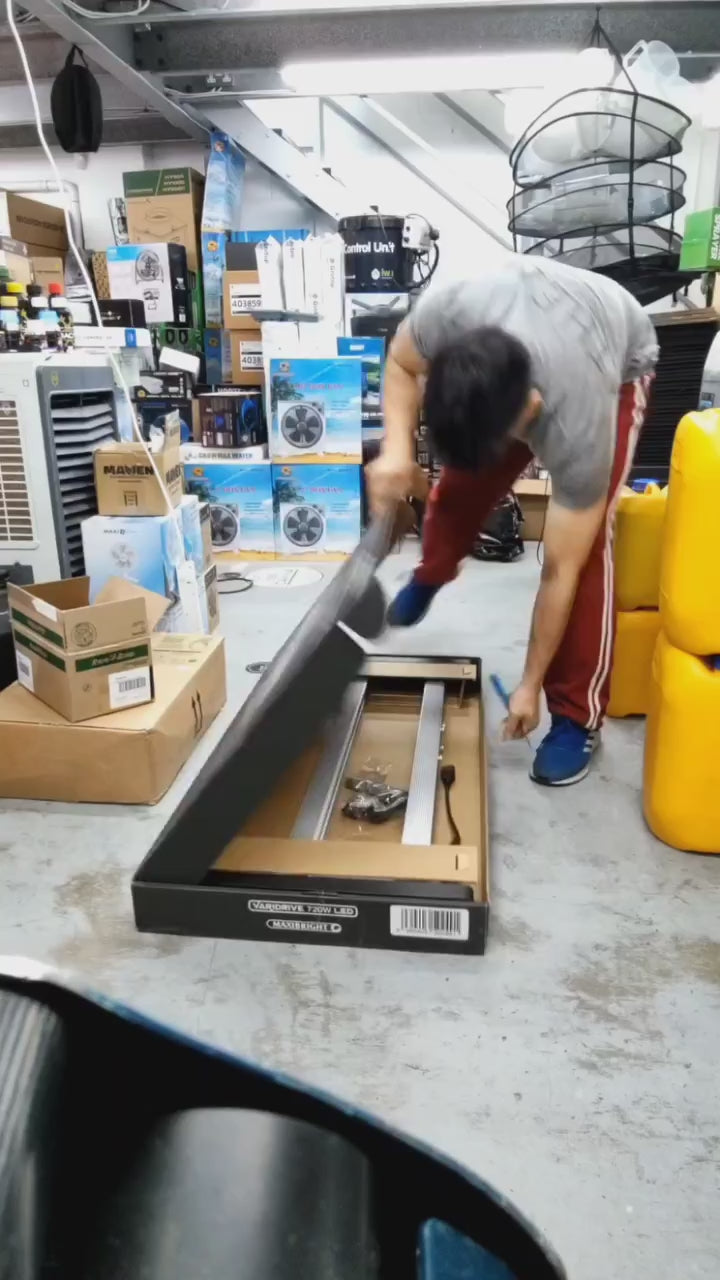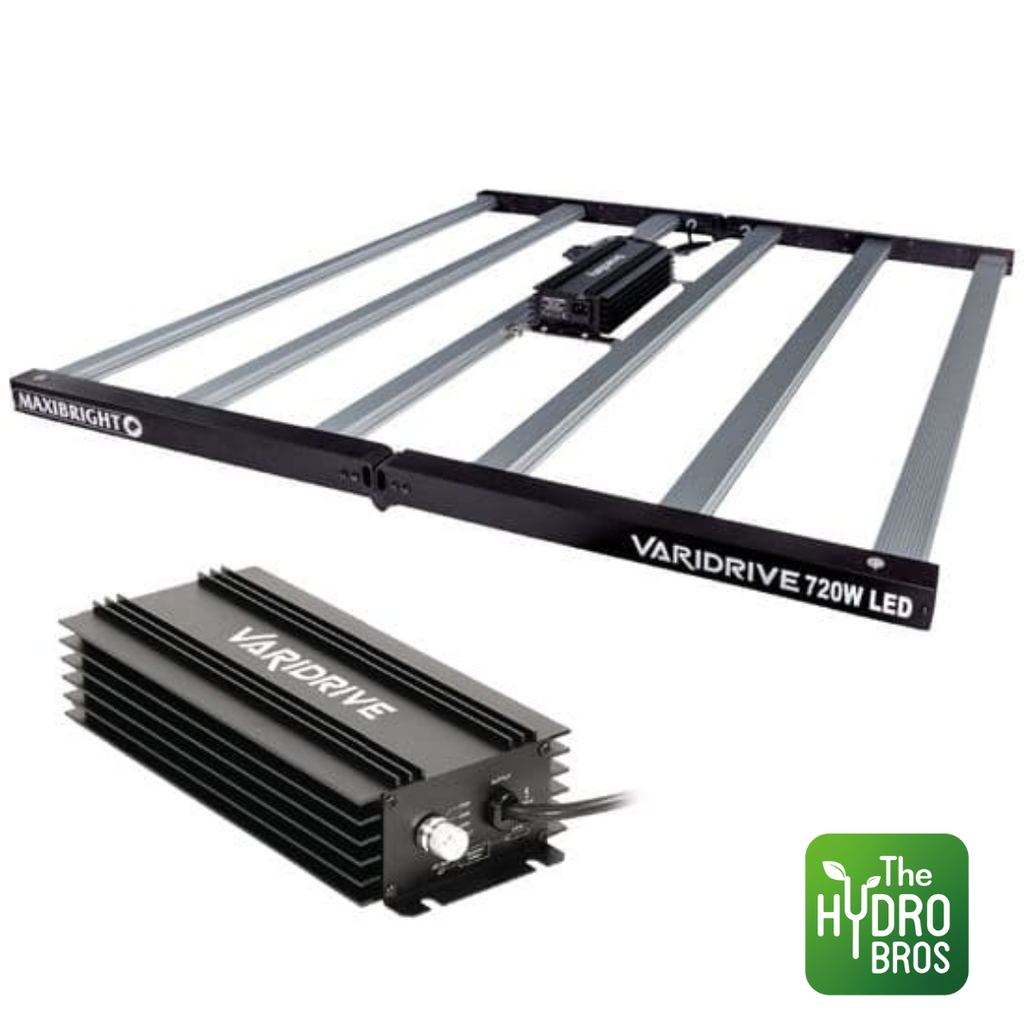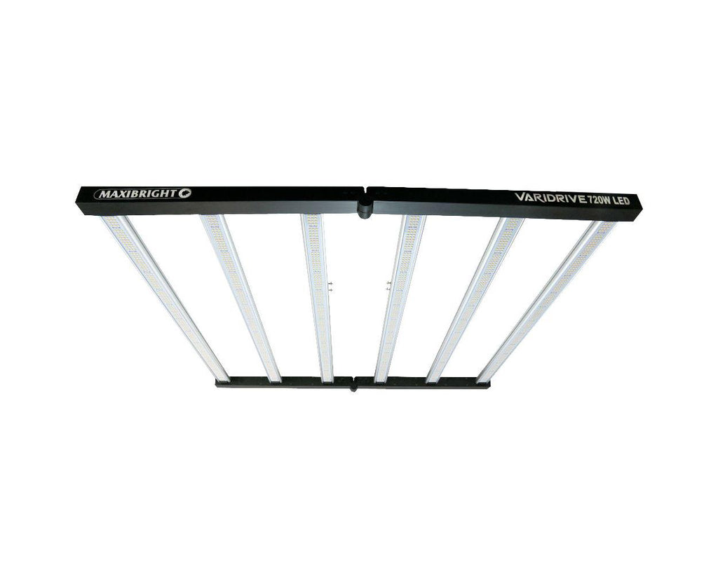 The Maxibright Varidrive 720W LED Grow Light uses 6 light bars for an even footprint of full spectrum light with added UV to benefit strong flowering. The foldable design makes it easy to store, carry, and allows a one-person installation.