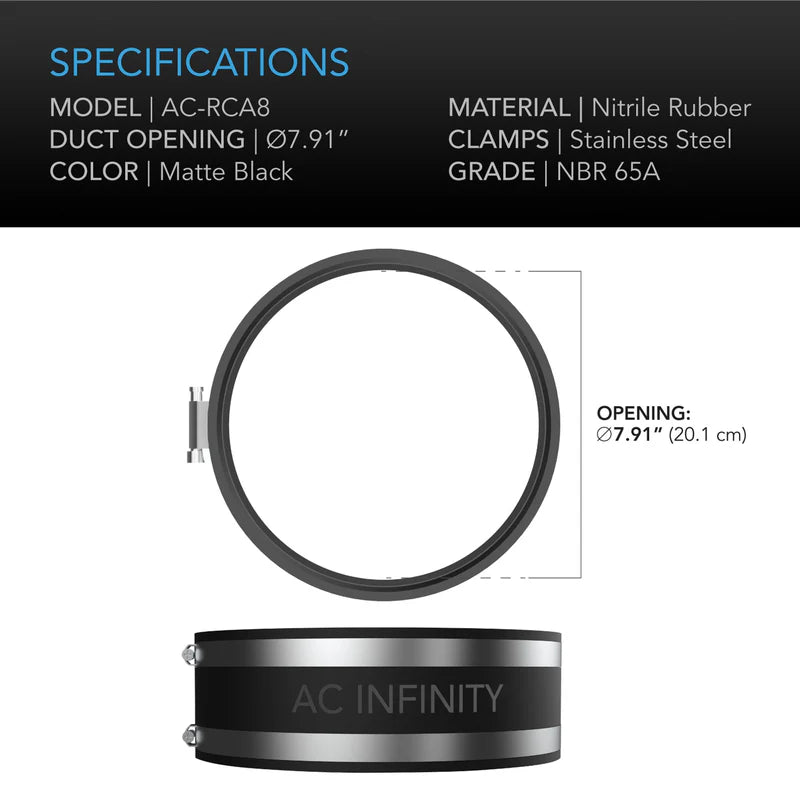 Una abrazadera de goma está diseñada para conectar los puertos de los conductos con un agarre seguro y hermético, evitando la pérdida de flujo de aire. La estructura de caucho de nitrilo butadieno se ajusta perfectamente a los puertos y tuberías gracias a su diseño flexible y adaptable. Su robusta construcción de caucho también suprime el ruido y las vibraciones al absorber las ondas sonoras, creando un entorno de cultivo o climatización más silencioso. Para garantizar una conexión aún más firme, puede ajustar los sujetadores de acero inoxidable con cierres de tornillo sin fin, integrados en las ranuras acanaladas de la abrazadera de goma para fijarla en su lugar. Al utilizar acoplamientos flexibles para conectar componentes de conductos, este acoplamiento de goma garantiza una instalación sencilla y un ajuste duradero.