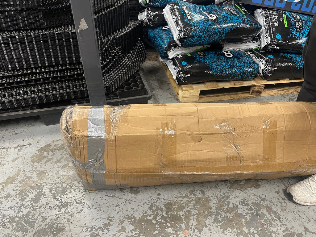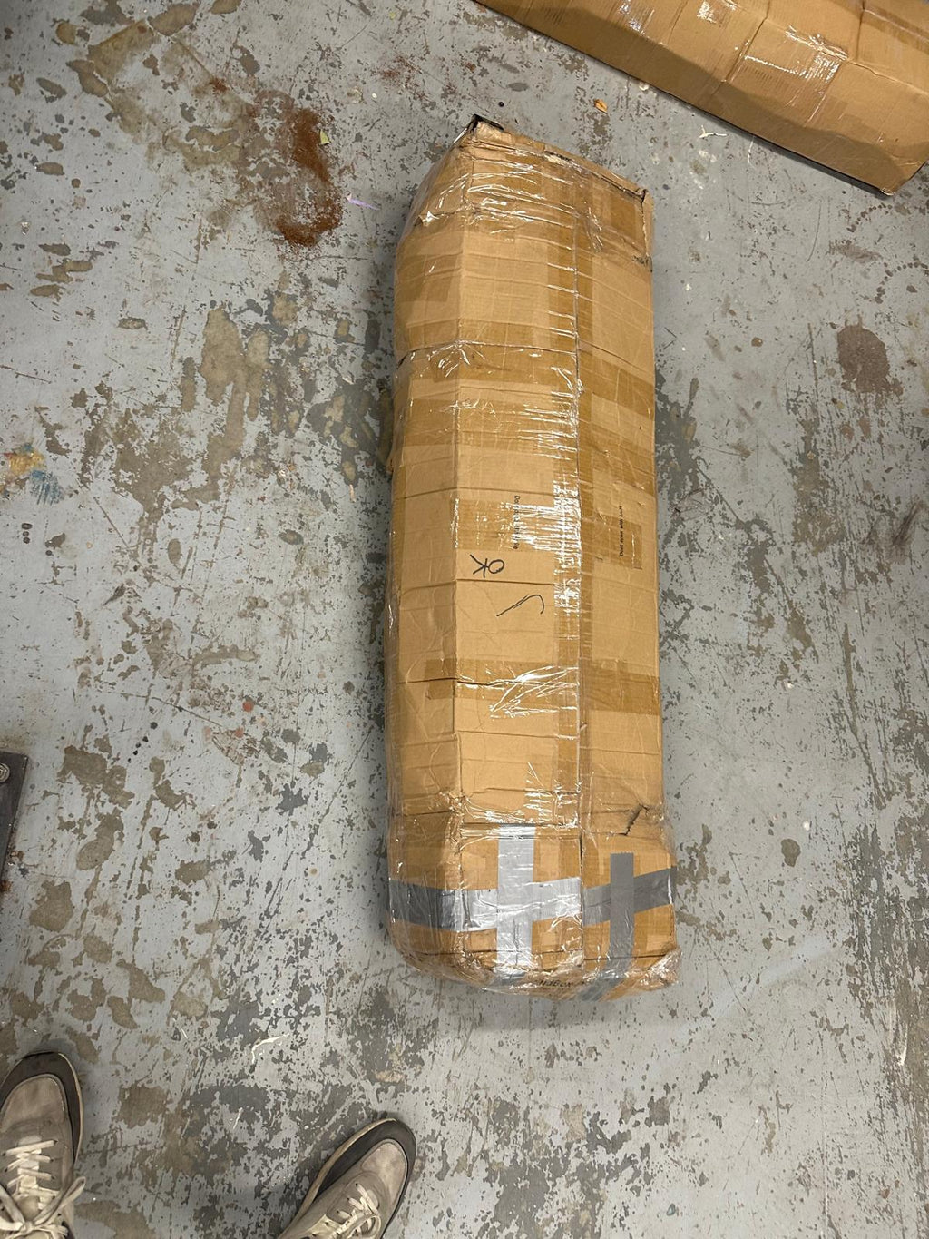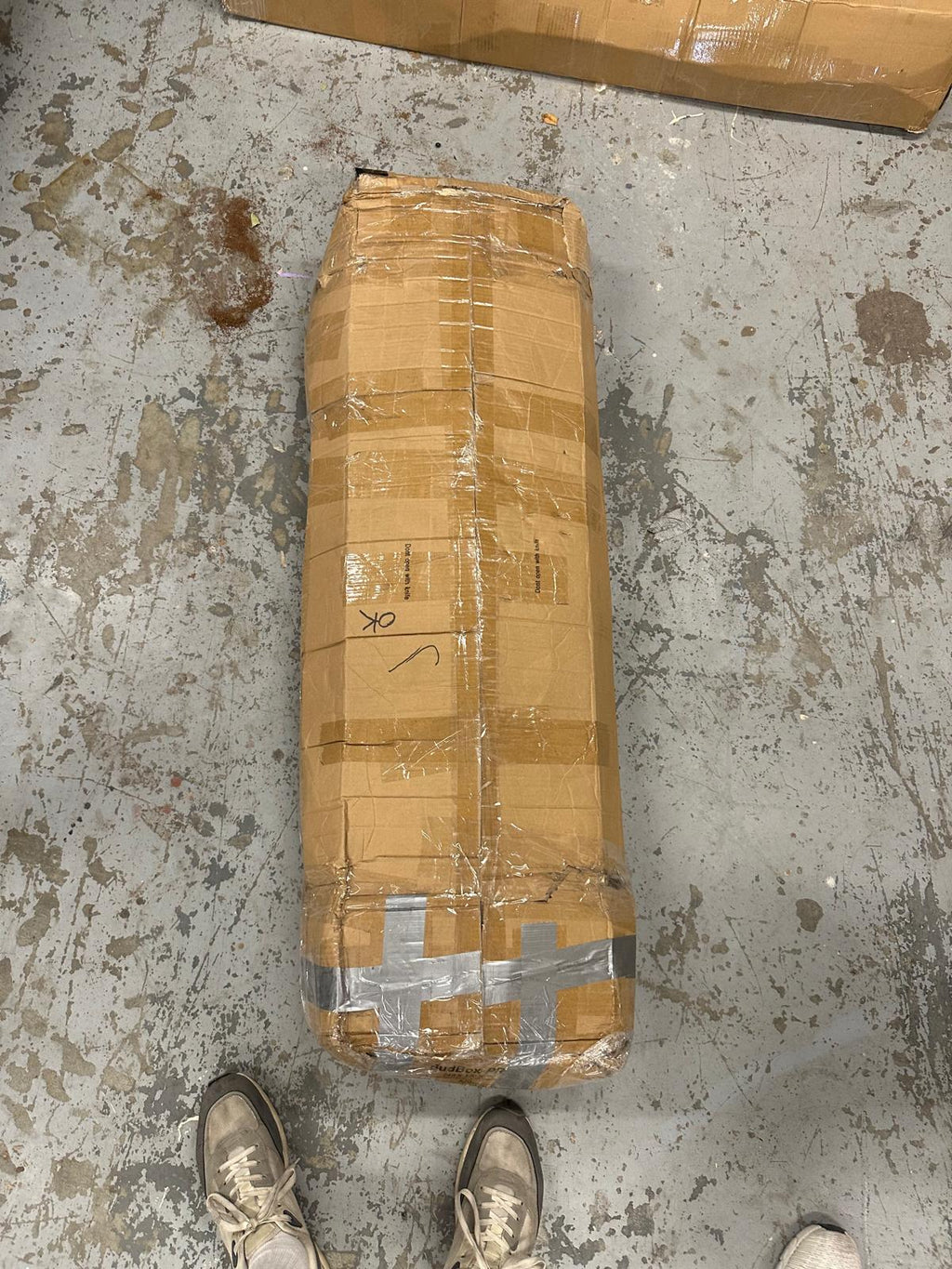 La caja está un poco deteriorada. Lo ideal es recogerla, de lo contrario, el envío cuesta £60.