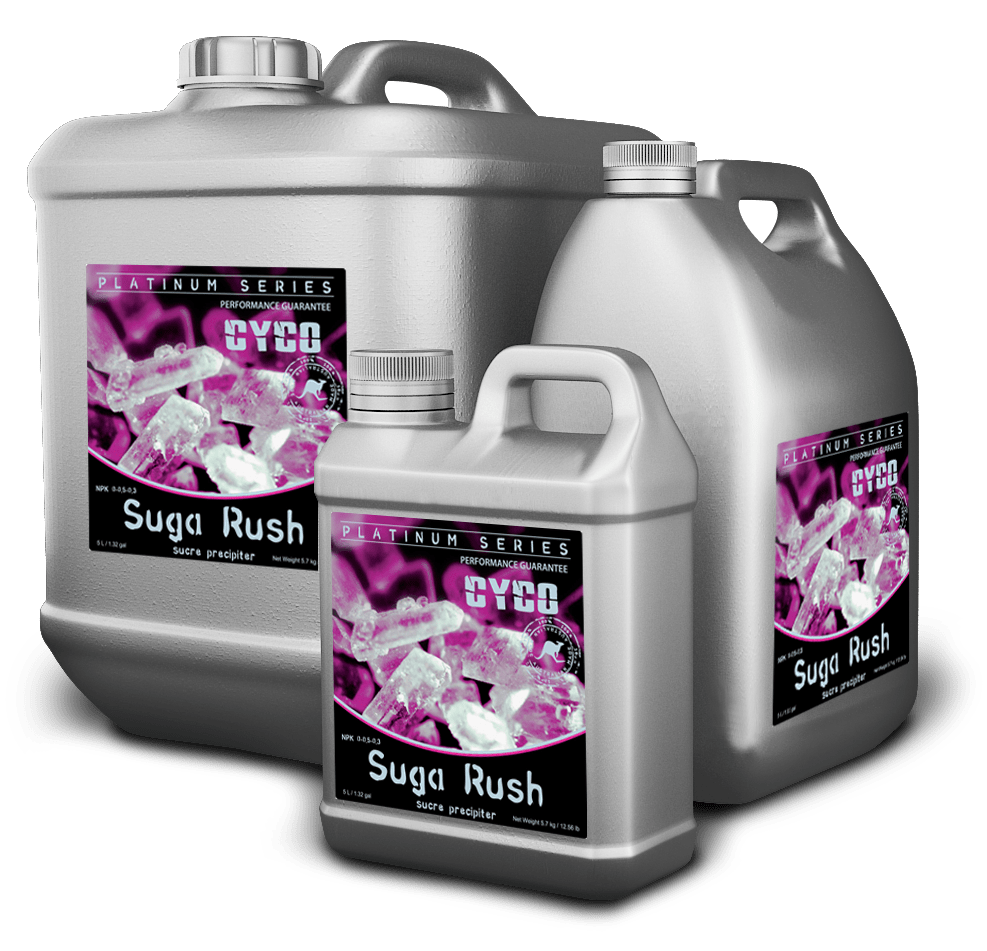 CYCO SUGA RUSH puede mejorar la floración al usarse en sistemas hidropónicos y sin tierra, como la turba de coco. Suga Rush contiene potasio, esencial para la translocación de azúcares. Maximiza el potencial de floración de las plantas. Mayor sabor y aroma. Garantiza flores más grandes. Frutos más grandes y vigorosos.