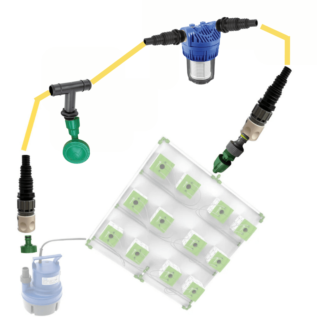 Regulador de Presión : función de seguridad que garantiza que sus goteros no reciban una presión de 1000 psi. No debería ser necesario, especialmente si tiene una bomba DAB que permite ajustar la presión deseada.