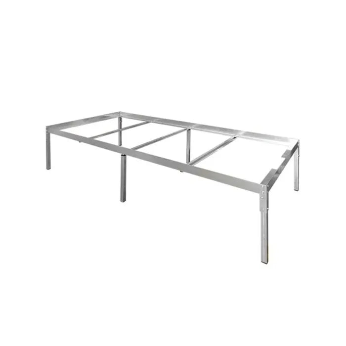 La parte inferior del marco tiene vigas de soporte que recorren la mesa y evitan que las bandejas se hundan en el marco.