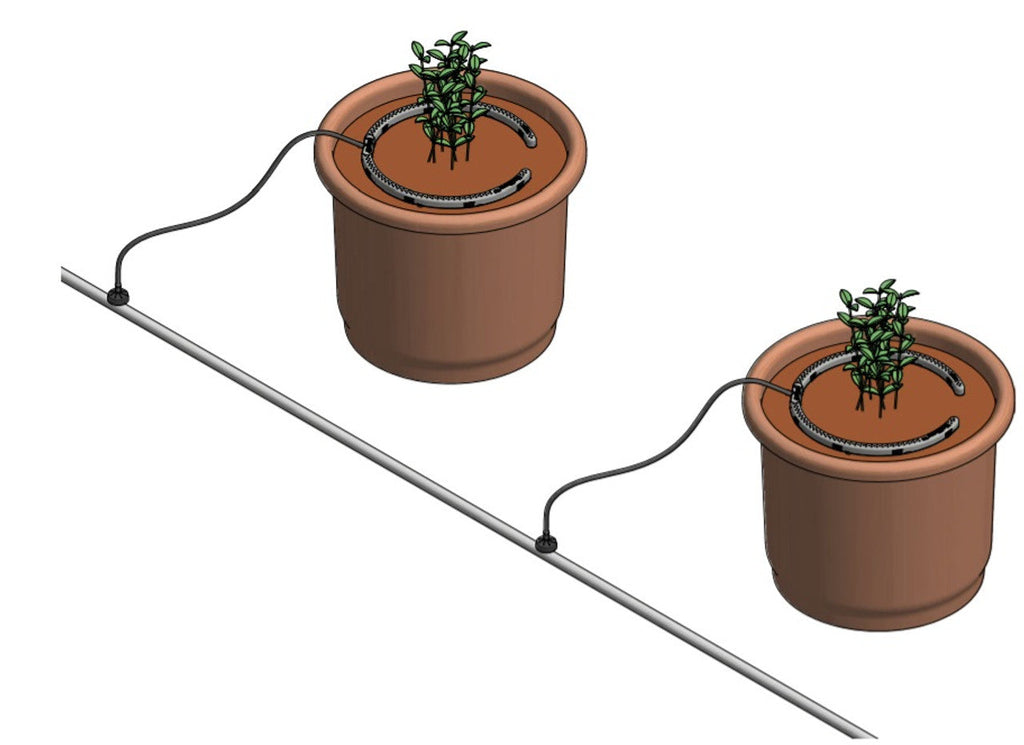 - Si vous avez moins de pots / que les pots sont rapprochés (c'est-à-dire que le trajet entre la pompe et vos plantes est minime), vous pouvez simplement fixer ces anneaux sur des collecteurs de goutteurs normaux . Ces anneaux s'adapteront parfaitement aux systèmes Wilma (alias Origin) existants.